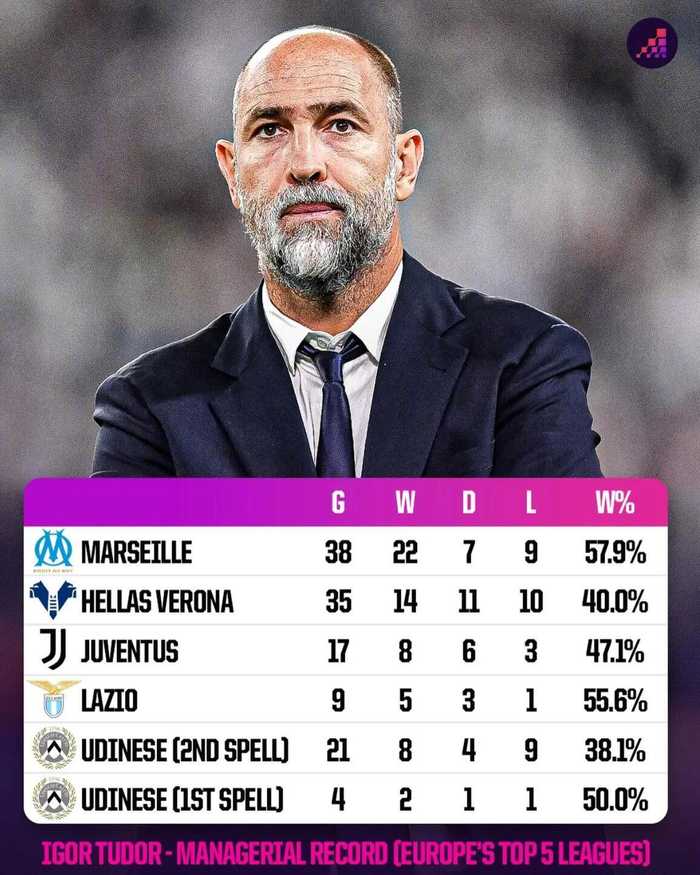 据此前罗马诺消息,前尤文图斯主教练图多尔即将成为热刺新任临时主教练,合同至今年6月到期。 Opta盘点图多尔五大联赛执教生涯战...