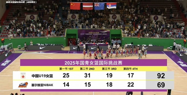 比赛上来,中国女篮U19就迅速进入状态连拿六分取得领先,分差也是逐渐拉开到两位数,整个第一节中国女篮U19将对手的得分控制在14分,次节中国女篮U19的攻势更加凶猛,单节轰下31分的同时继续将对手的得分限制在15分,分差也是直逼三十分,半场结束时中国女篮U19领先27分;下半场回来,中国女篮U19的进攻表现有所放缓,这一节她们只拿到19分,不过对手也只拿到18分,末节一上来,李雨汧上篮失去重心倒地被搀扶下场,这也影响到中国女篮U19的场上表现,近四分钟的时间里只拿到2分,不过由于前三节的分差过大,比赛还是没有悬念,最终中国女篮U19大胜塞尔维亚NIBAK俱乐部。